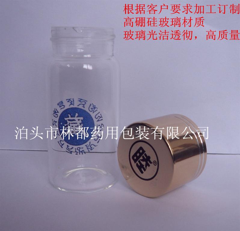這款玻璃瓶的容量有40ml, 是根據(jù)客戶要求的盛裝片劑數(shù)量,加工定制的,材質(zhì)是采用進(jìn)口玻璃材質(zhì), 耐高溫,材質(zhì)中含硼量為13.5%,增強(qiáng)了化學(xué)穩(wěn)定性和熱穩(wěn)定性, 玻璃光潔透徹, 高質(zhì)量,主要是用于各種片劑產(chǎn)品。
